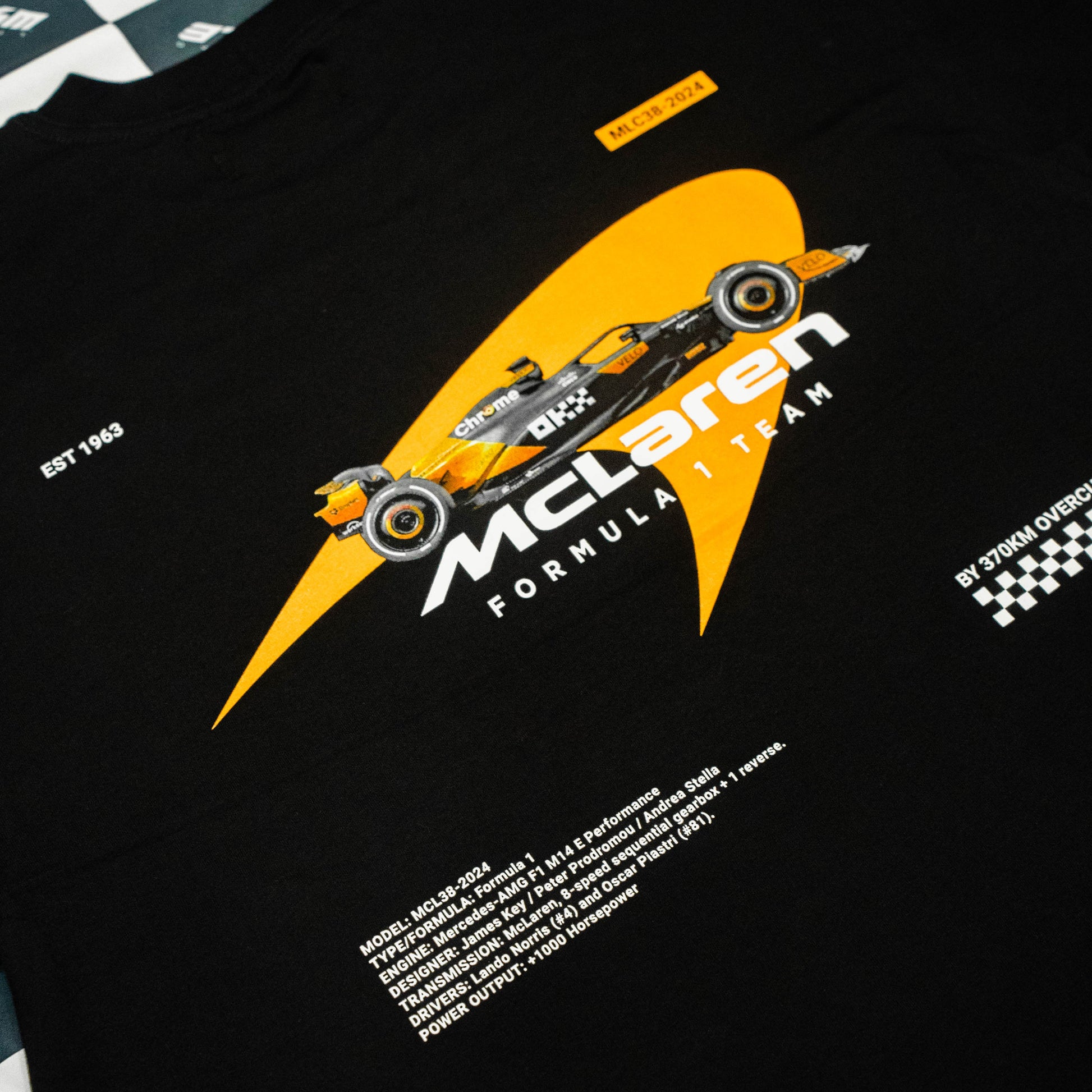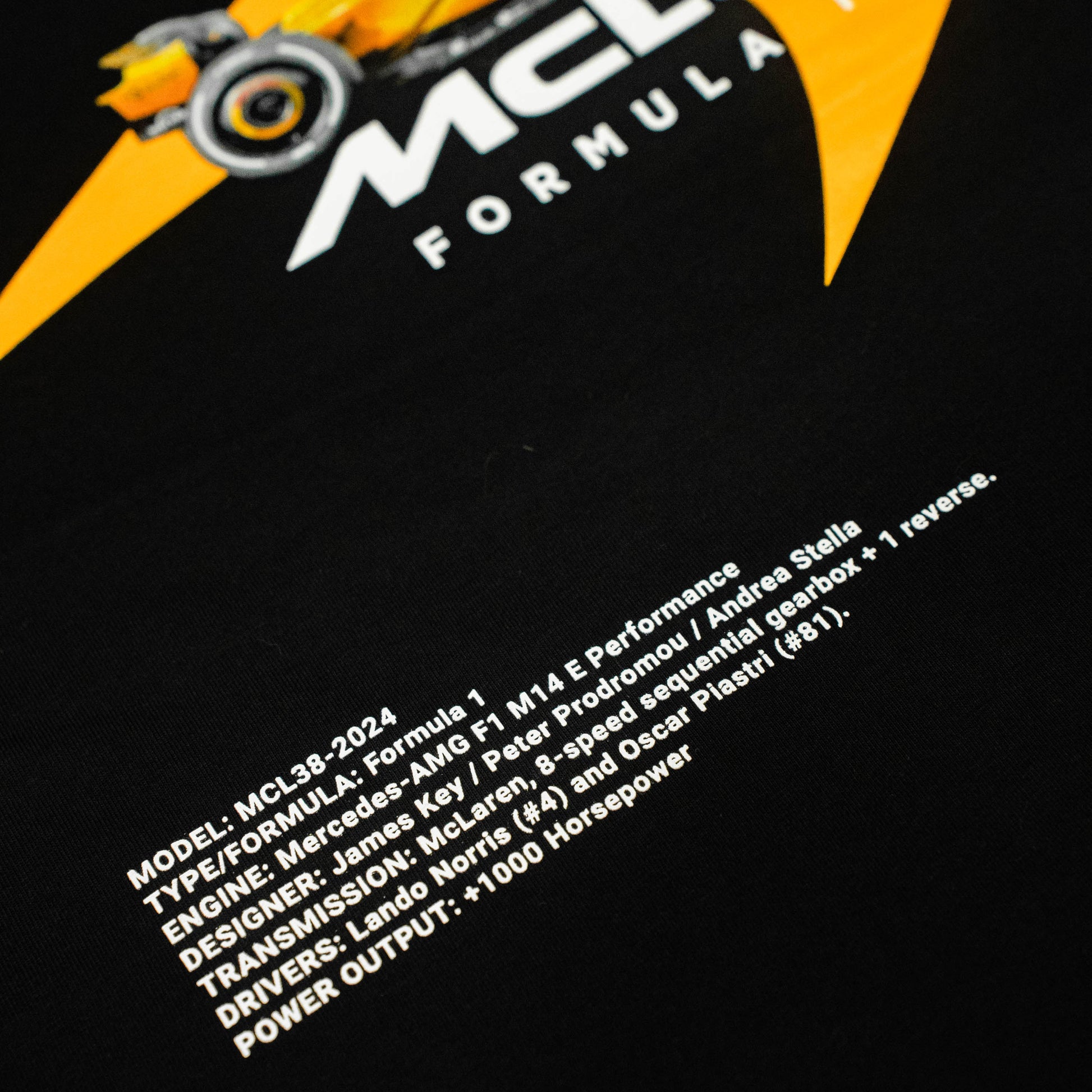 McLaren siempre ha sido esa escudería que mezcla tecnología con espíritu de lucha. Esta camiseta es un homenaje al monoplaza MCL38, que ha sido una máquina impresionante en 2024.