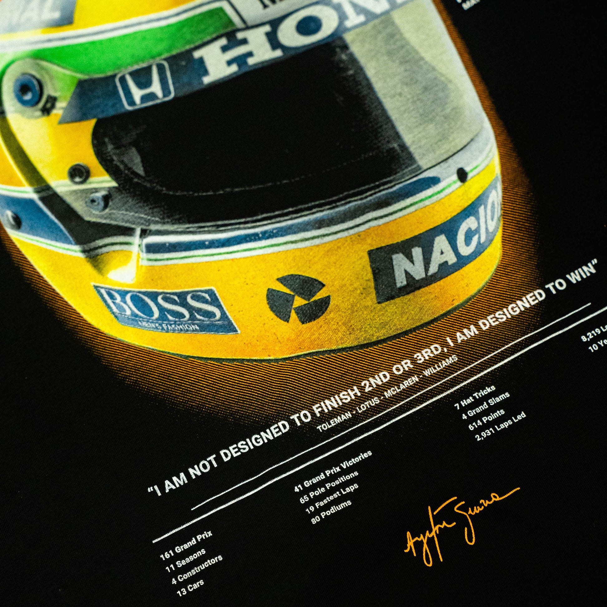 Le rendimos homenaje a Ayrton Senna a traves de su iconico casco, SENNA ha sido un referente del deporte, un simbolo de destreza y valentia en la pista. Es un homenaje a un hombre que trascendió en las carreras para convertirse en una inspiración. Porque Senna no es historia, es leyenda.